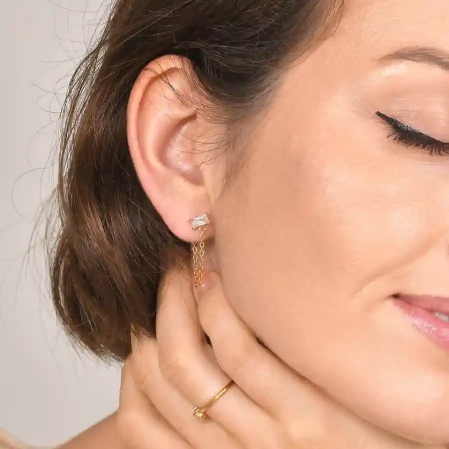 Crystal Chain Ørehænger – Forgyldt Ørering med Kæde og Zircon