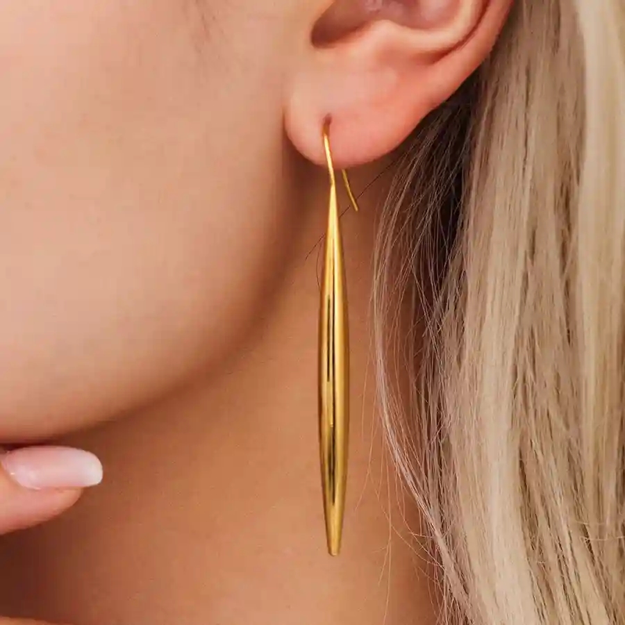 Drop Long Ørering – Lang Forgyldt Ørering i Ædelstål 6 cm