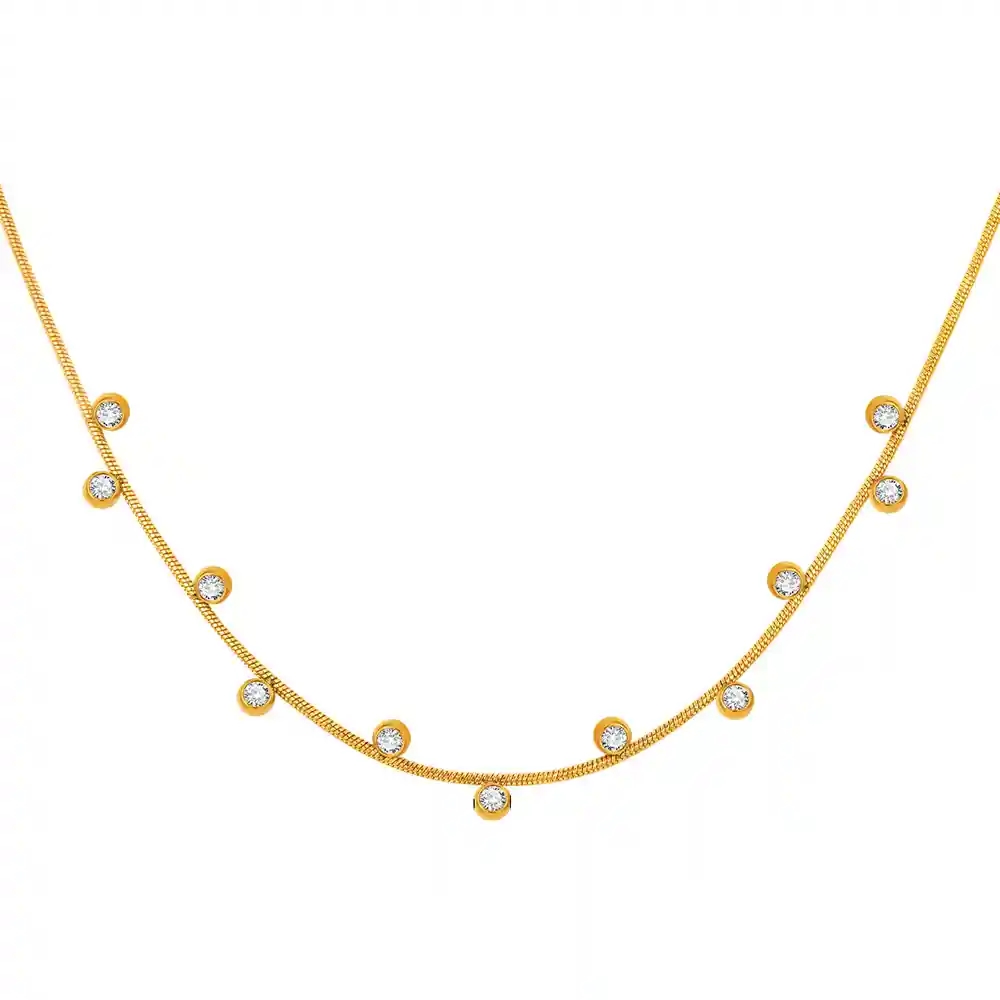 Forgyldt halskæde til kvinder med hvide zirkoner i elegant design.