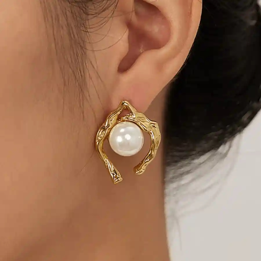 Golden Pearl Twist – Forgyldte Øreringe i Ædelstål